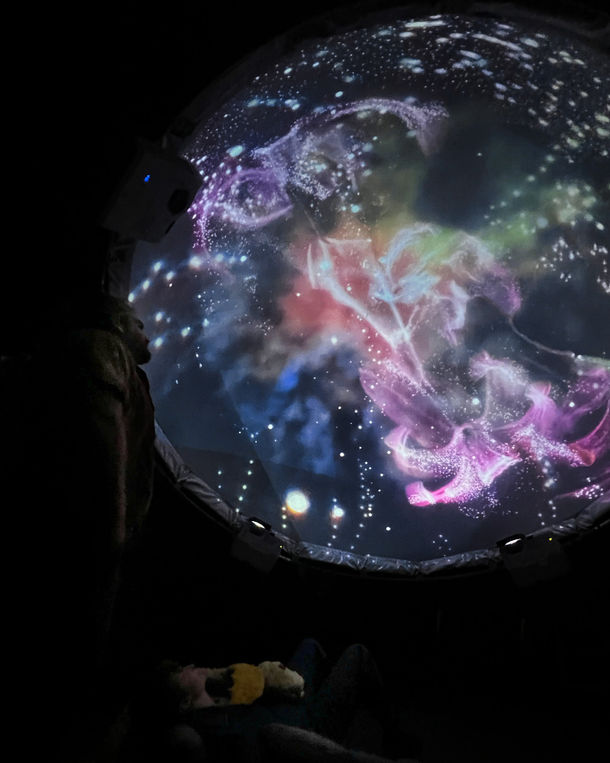 "Chthonic Light" serves as a meditation on the timeless cycle of death and rebirth. The word "Chtonic" in the title is a play on "chthonic," signifying the fertile underground soil where matter metamorphoses into a tonic for new life. In the first iteration of the piece, a LIDAR scan of a tiger lily emerges from an AI-generated nebula and undergoes a visual transformation from material decay to a digital constellation of subatomic particles. Produced in honor of my late grandmothers, the work explores themes of life's cyclical nature, highlighting the potential for renewal even in the face of profound loss. It juxtaposes the fleeting beauty of a flower with the celestial wonder of a nebula, inviting viewers to contemplate the interconnectedness between the macro and the micro. The first version of this work premiered as an immersive dome projection in October 2023 at Spectra Studio in Los Angeles.